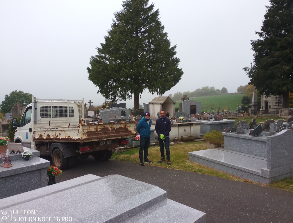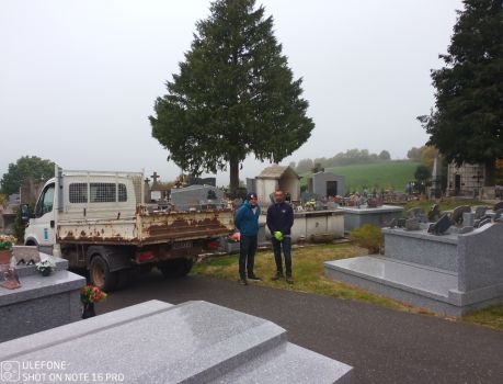 L'équipe Technique est en cours de nettoyage du Cimetière Communal dans cette période précédent la Toussaint.