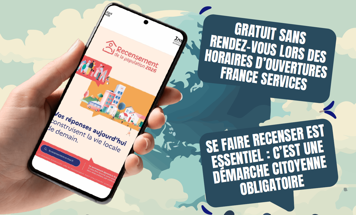 ⚠️ Merci de vous munir impérativement : de votre notice internet de recensement (avec vos codes d’accès) et de votre smartphone, ordinateur ou tablette.